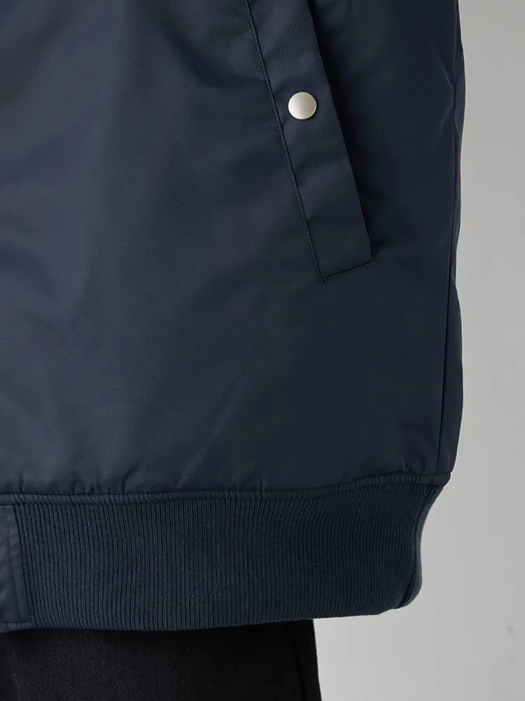 高密度300Tツイルの表地に保温性中綿、アルミファスナー、大きなミリタリーワード刺繍仕様といったこだわりのディテール内容。