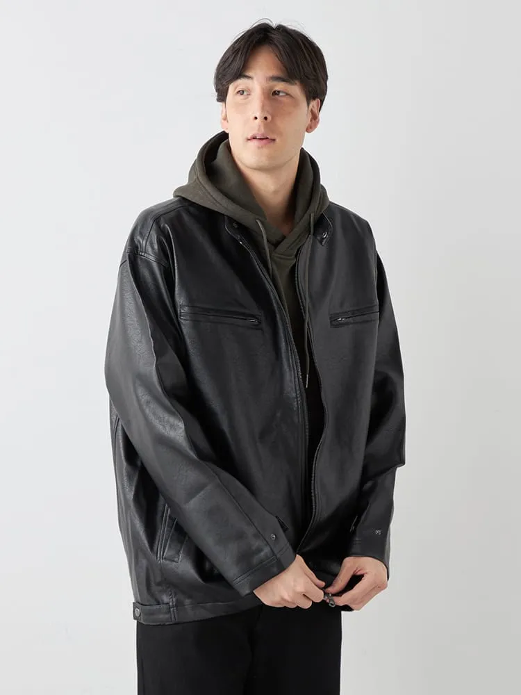 【WILDER&WEST】合成皮革ライダースブルゾン (ブラック)