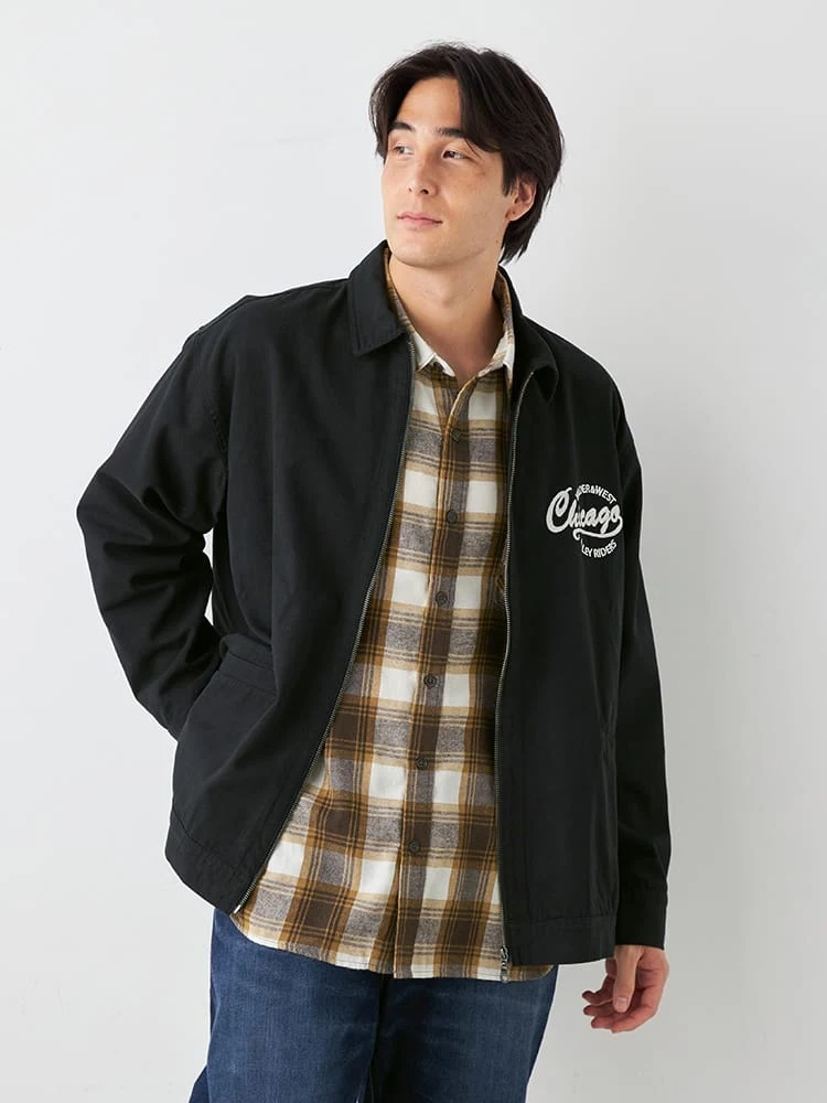 【WILDER&WEST】キャンバスドリズラー刺繍ブルゾン(ブラック)