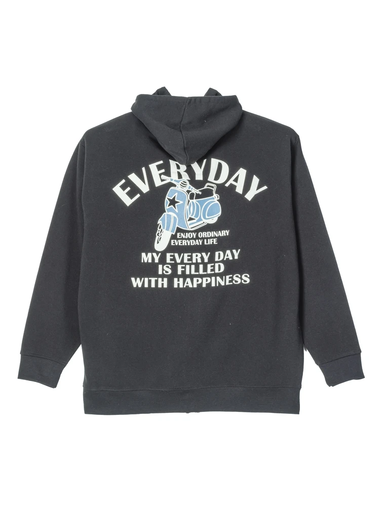 ベーシックなバイクプリントを施したカジュアルなZIPパーカーです。