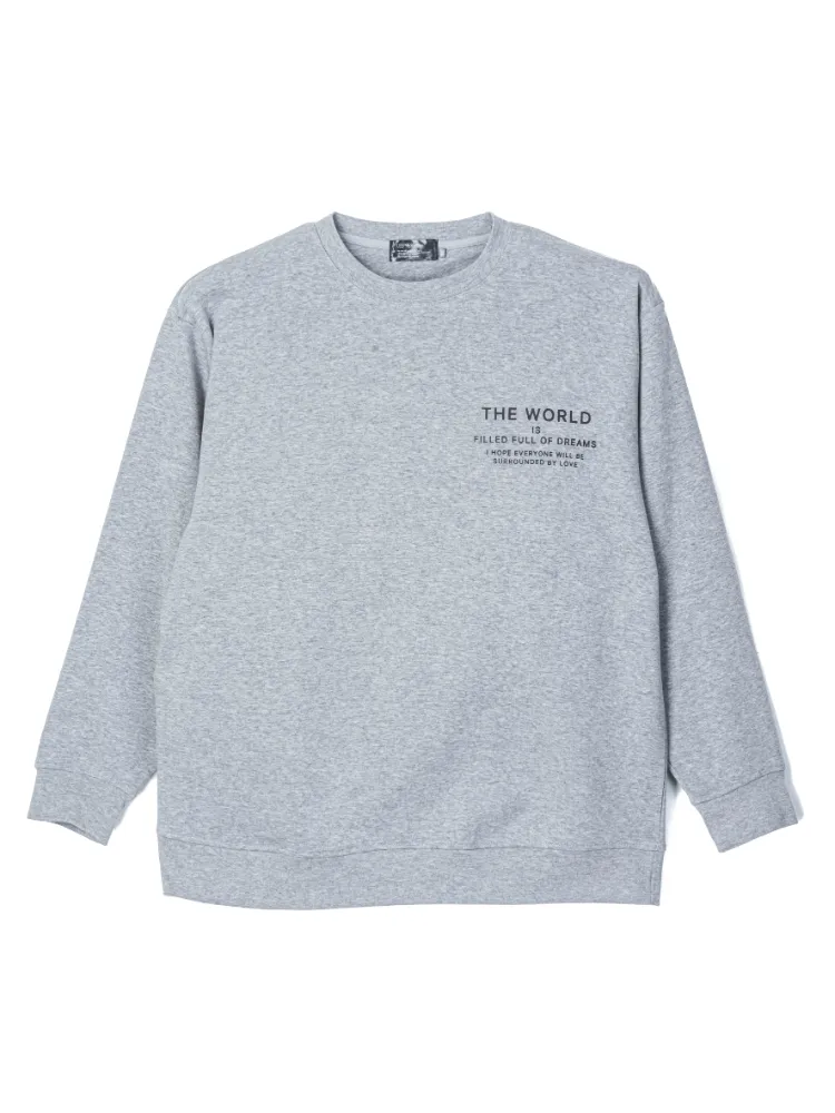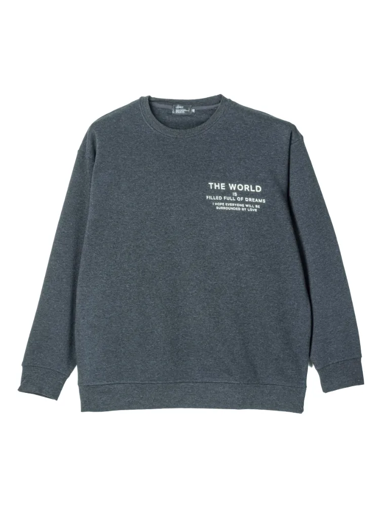 大きいサイズ メンズ 裏起毛トレーナー(フォト)(M.グレー)