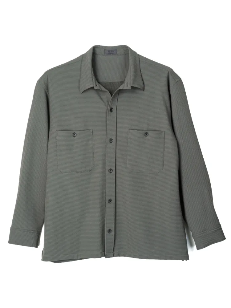 メガストレッチで着心地最高なシャツジャケット。カジュアルシーンから仕事、旅行にも最適。着こまなくても裏がフリース状で二重織りになってるから暖かい。