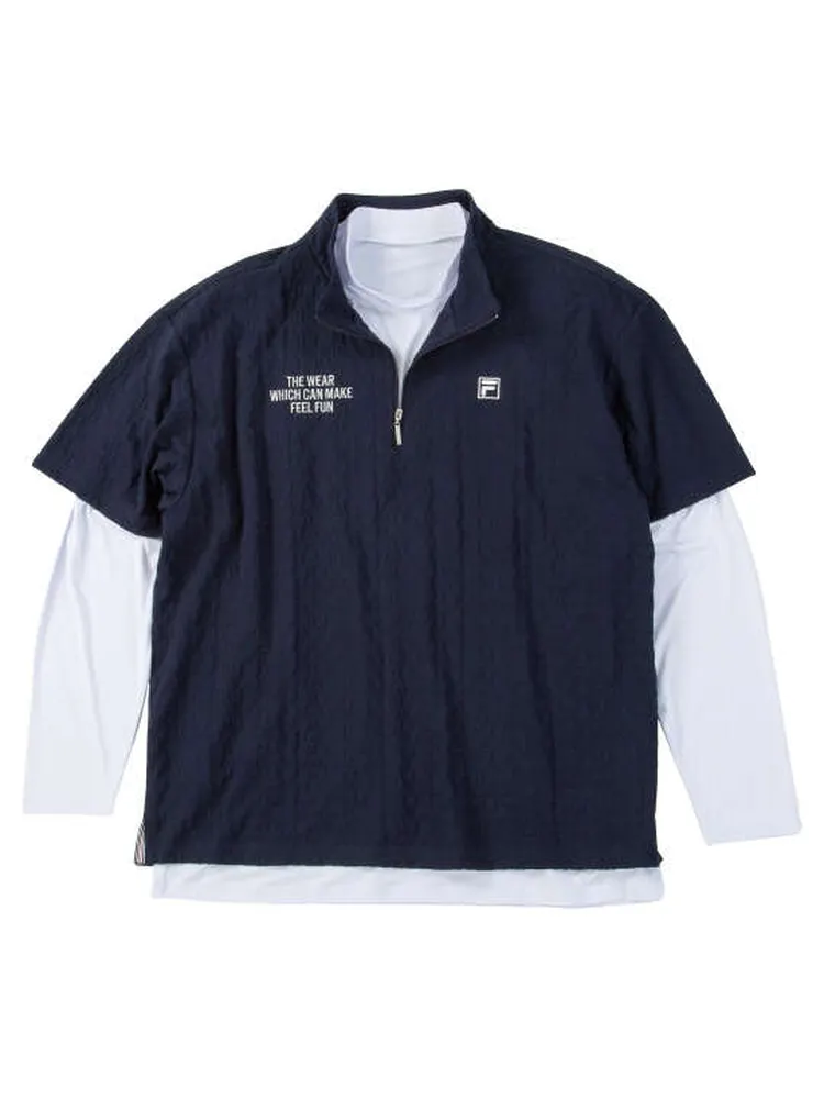 大きいサイズ メンズ 【FILAGOLF(フィラゴルフ)】3Dジャガード半袖シャツインナーセット *カタログ商品(ネイビー)