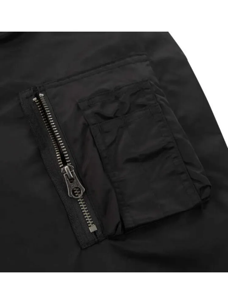 程よい光沢感のあるナイロン素材の丈夫なボディに、中綿入りで暖かさも備えたフライトジャケット。