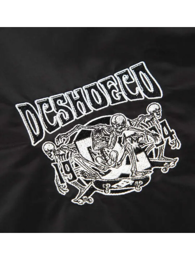 スケートスカルの刺繍を大胆にレイアウトした、インパクト抜群のバックスタイルが魅力。
