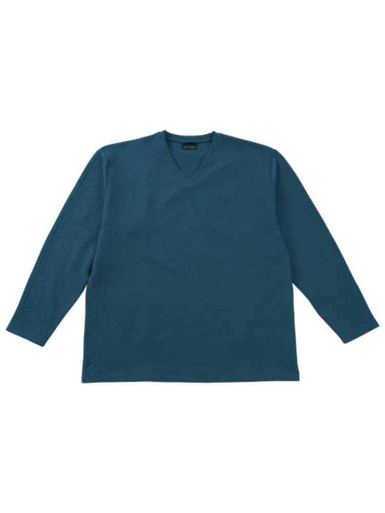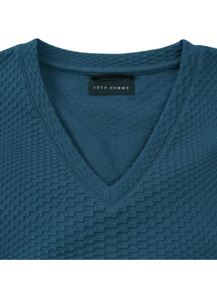 【TETE HOMME】ブリスタージャガードVネック長袖Tシャツ *カタログ商品(ターコイズ)