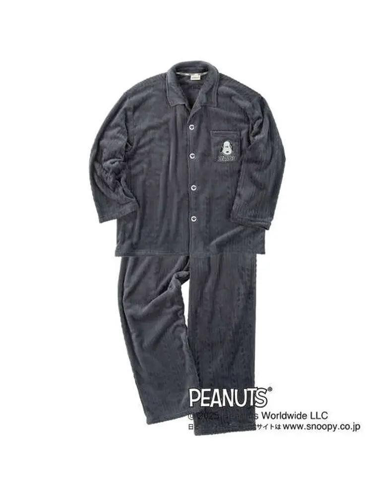 大きいサイズ メンズ 【PEANUTS】ふわもこシャツパジャマ *カタログ商品(ネイビー)