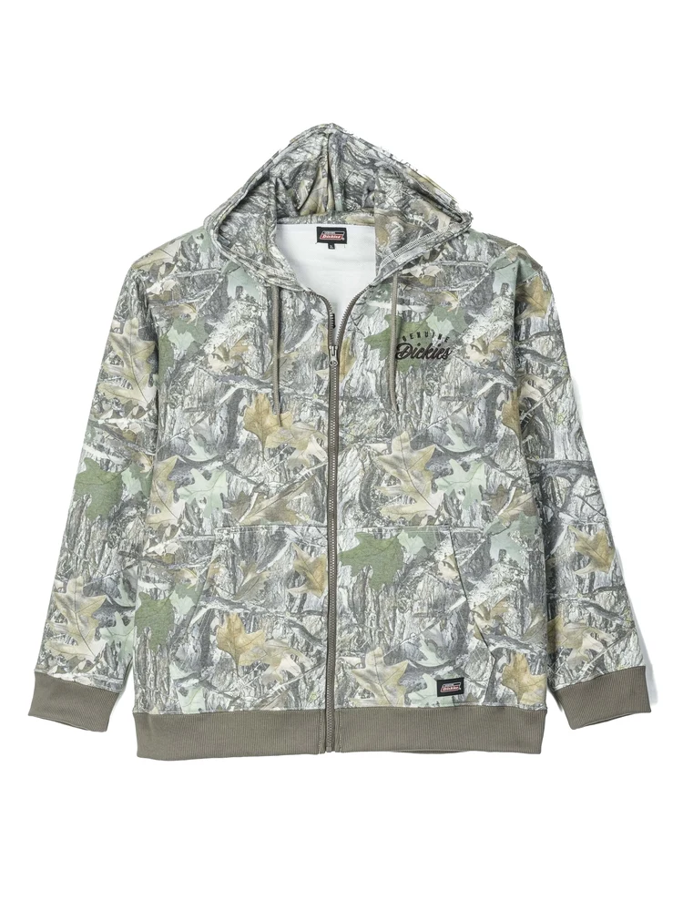 【GENUINE DICKIES】裏毛バック刺繍 プリントフルジップパーカー(カーキー)