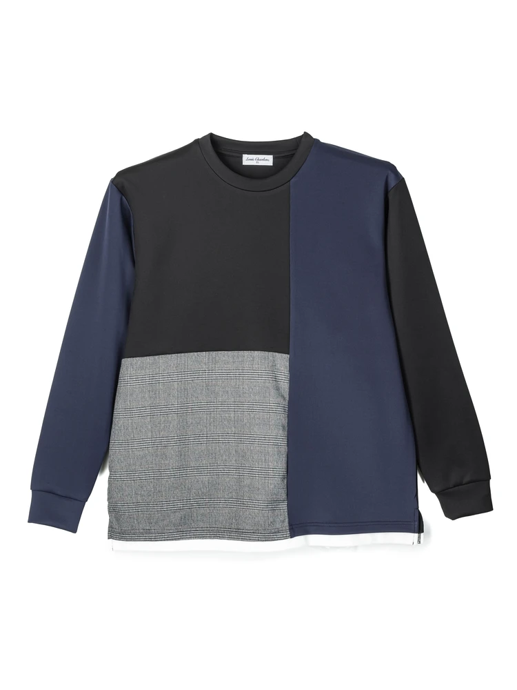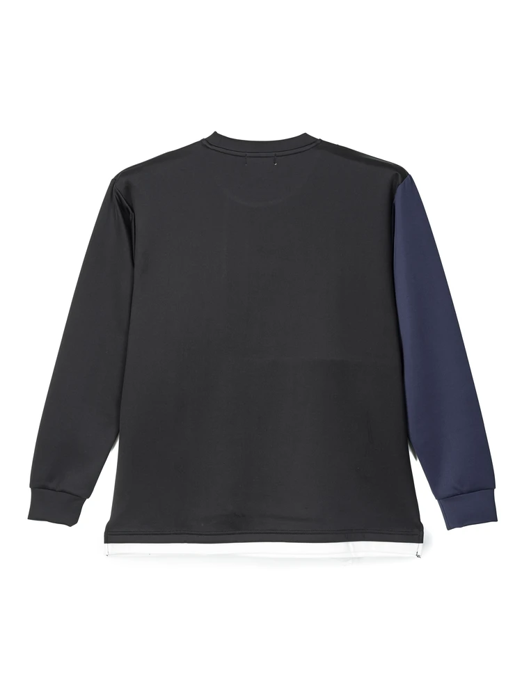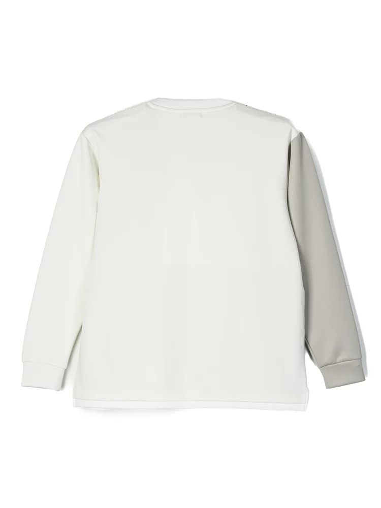 異素材を使ったブロッキングの配色デザインがポイントの長袖Tシャツです。