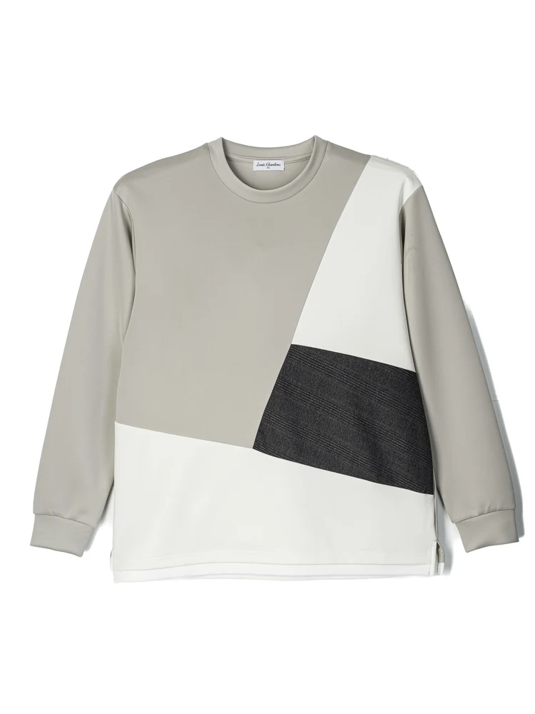 【ルイシャブロン】異素材ブロッキングレイヤードT(L.グレー)