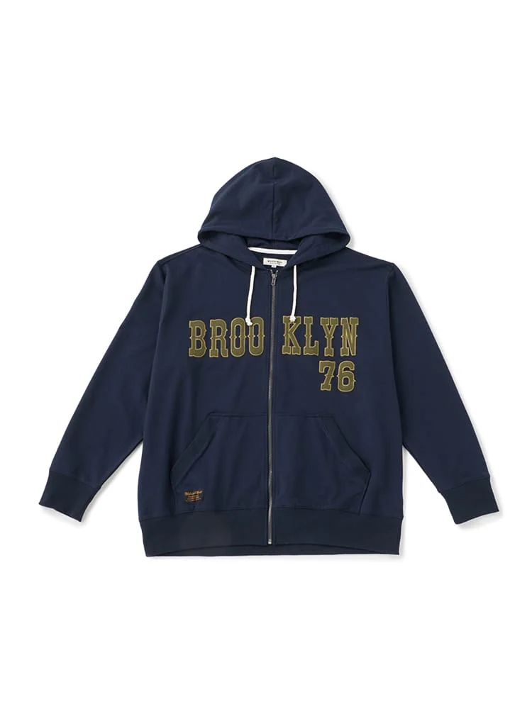 大きいサイズ メンズ 【WILDER&WEST】ミニ裏毛ツイルワッペンスウェットパーカー(オフホワイト)