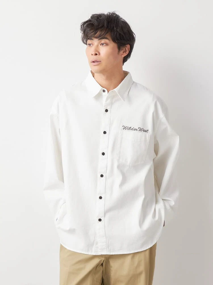 ハリのあるコットンルイル素材を使用した、ロングシーズン着回しのきく長袖シャツです。