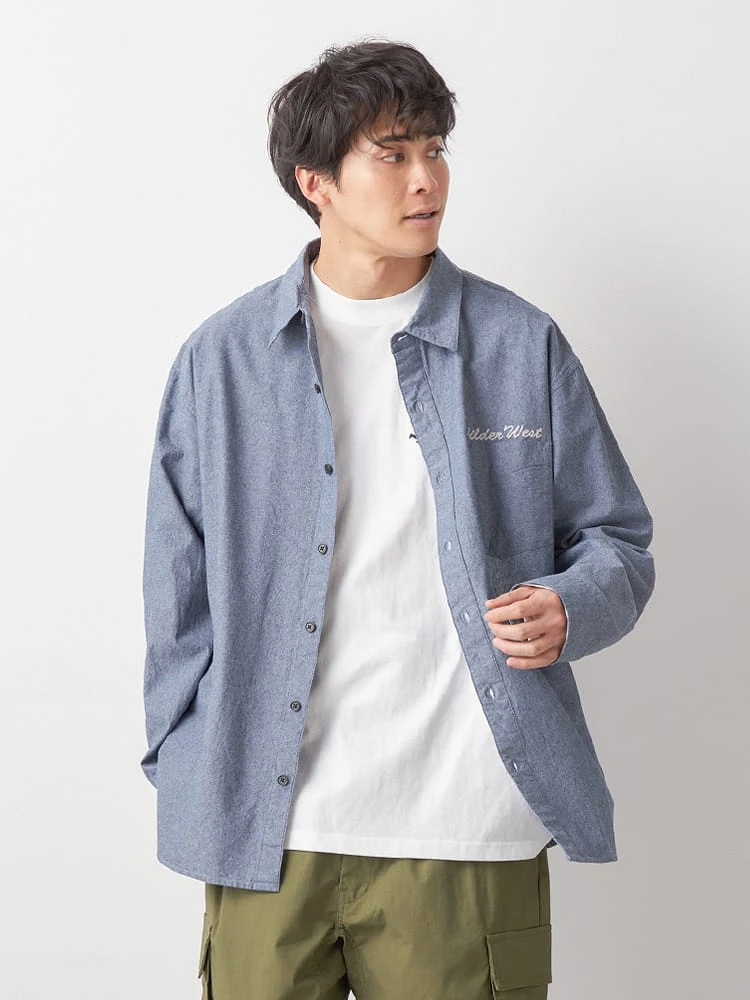 大きいサイズ メンズ 【WILDER&WEST】アメリカンビンテージ刺繍シャツ(ブルー)