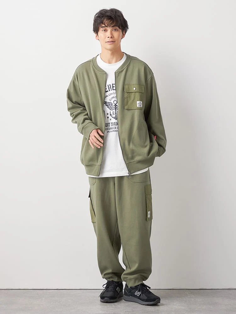 大きいサイズ メンズ 【RED BERETS(レッドベレー) 】WフェイスミリタリーZIPトップ(ブラック)