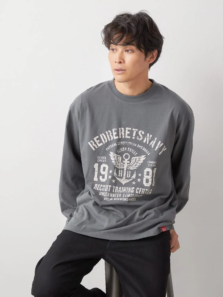 大きいサイズ メンズ 【RED BERETS(レッドベレー) 】ミリタリープリントTシャツ(C.グレー)