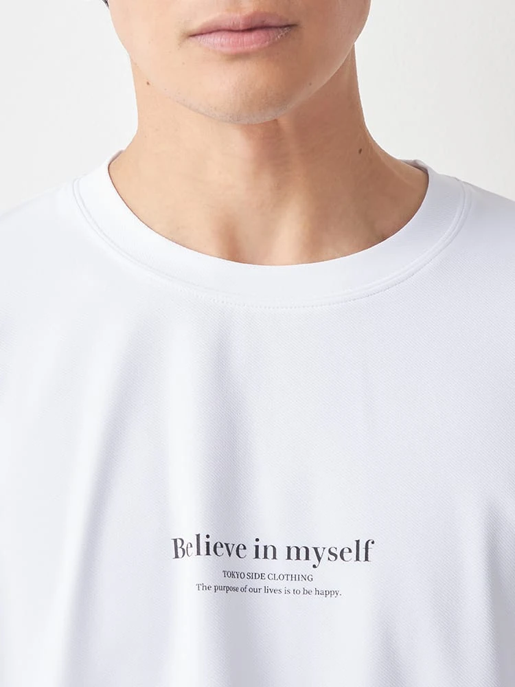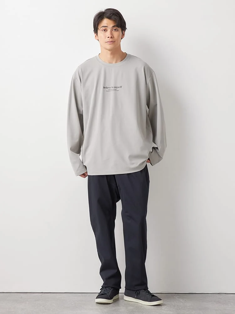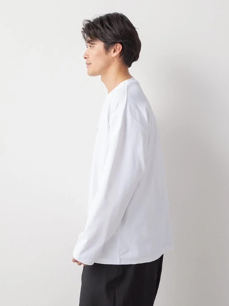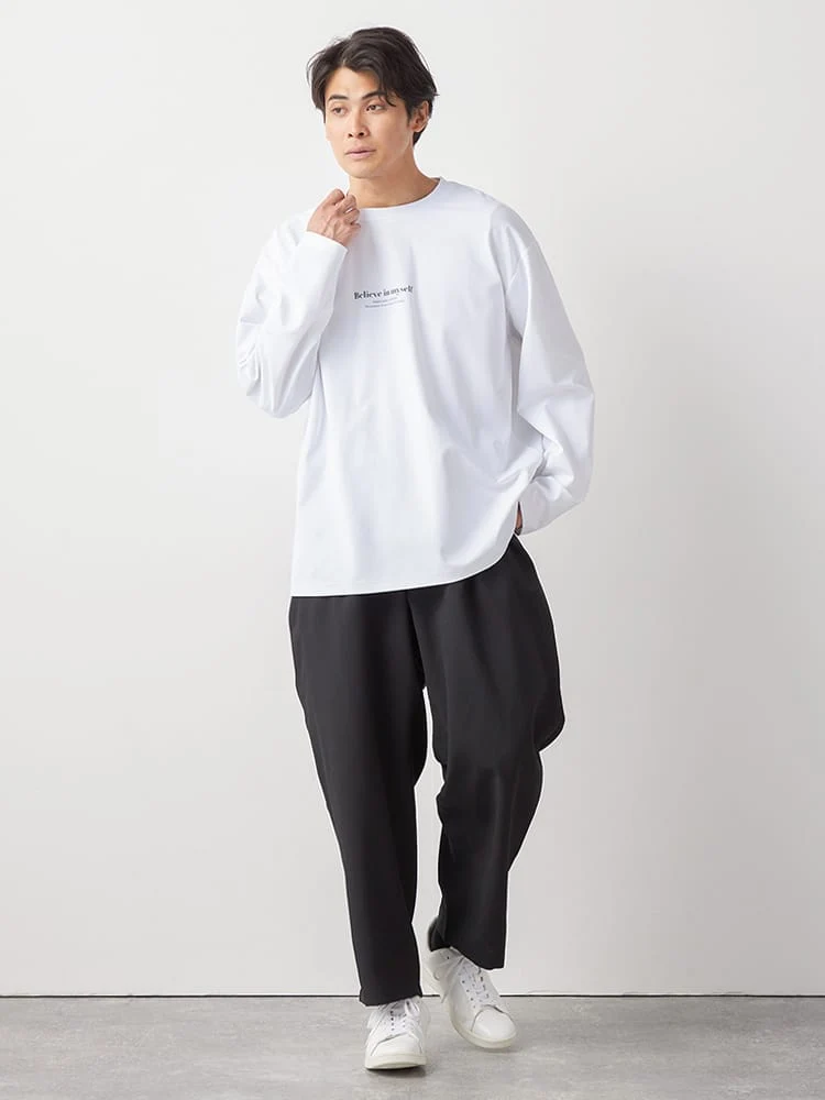 合わせるボトムやアイテムを選ばない無地ベースに、アルファベットロゴのワンポイントでスタイリッシュに仕上げました。