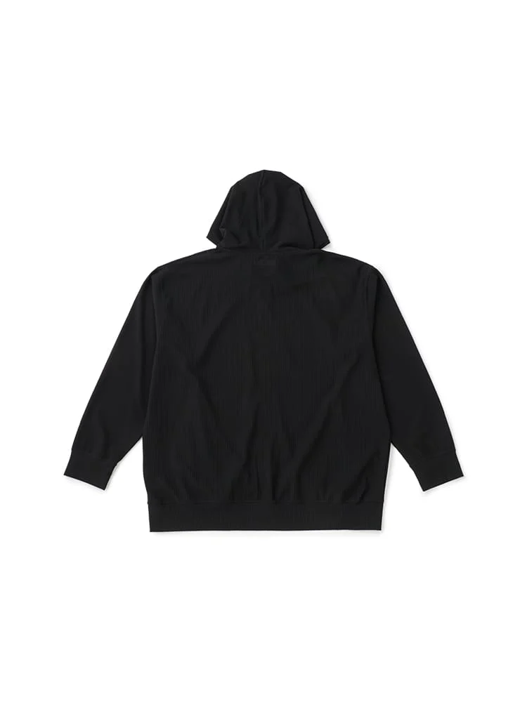 着まわしやすいワンカラーベースに、フードのドローコードの配色がアクセントになった1枚です。