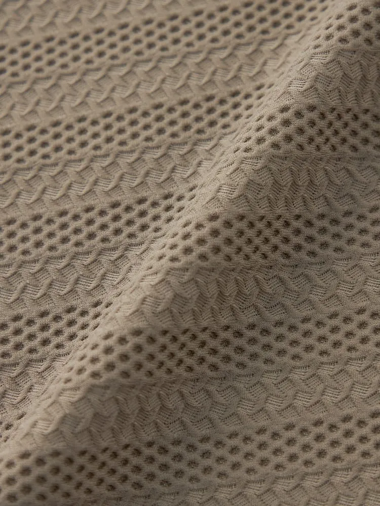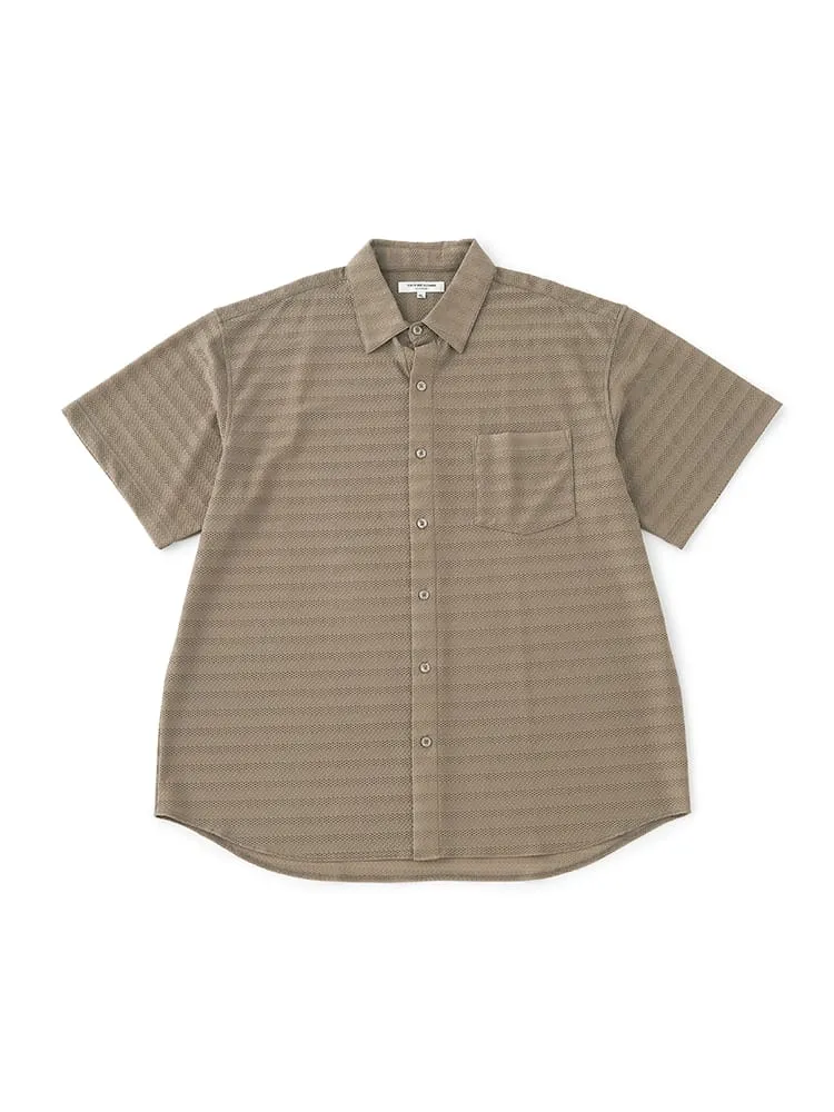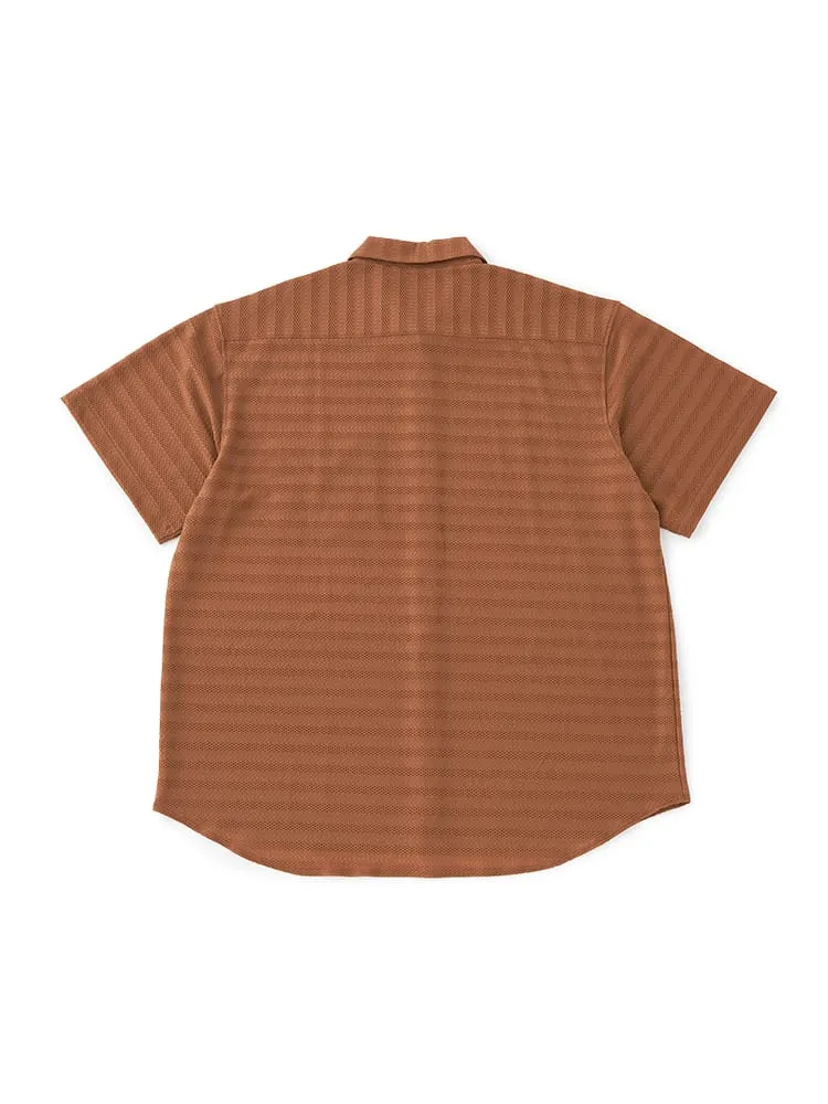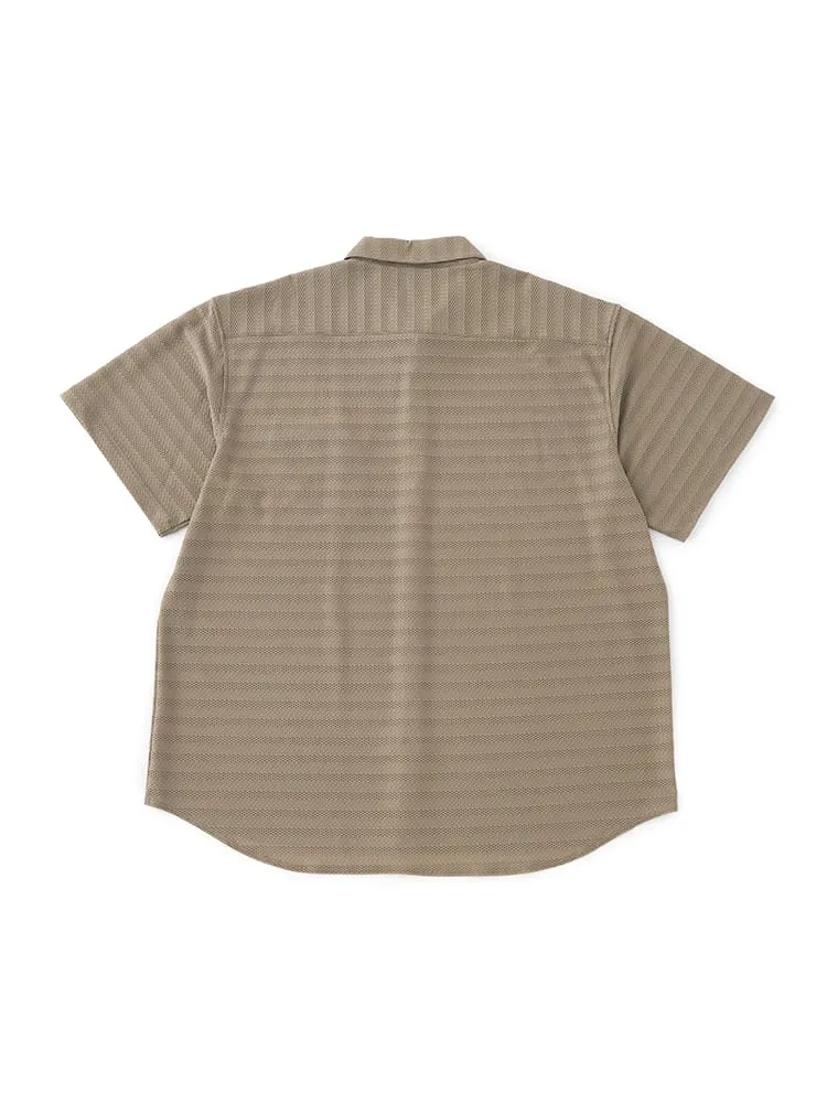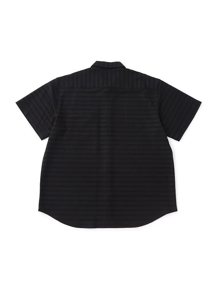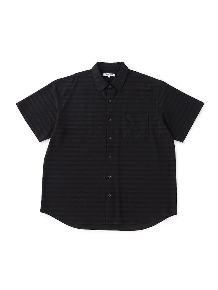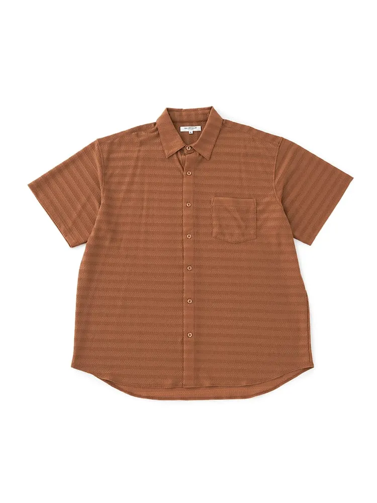 大きいサイズのストレッチファイバージャガードニットシャツ。冷感性のあるナイロン繊維とスパンデックス繊維を合わせた高伸縮ニットシャツ。ジャガード編み地の高級感ある見た目と抜群の着心地が特徴の新スタイルアイテムです。衿裏抗菌消臭デオドラントネーム付き。
