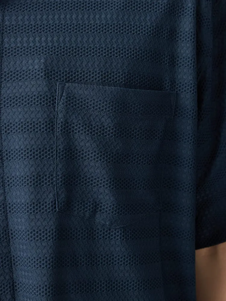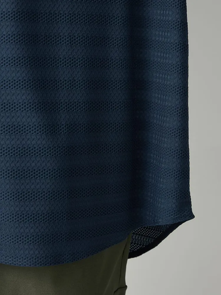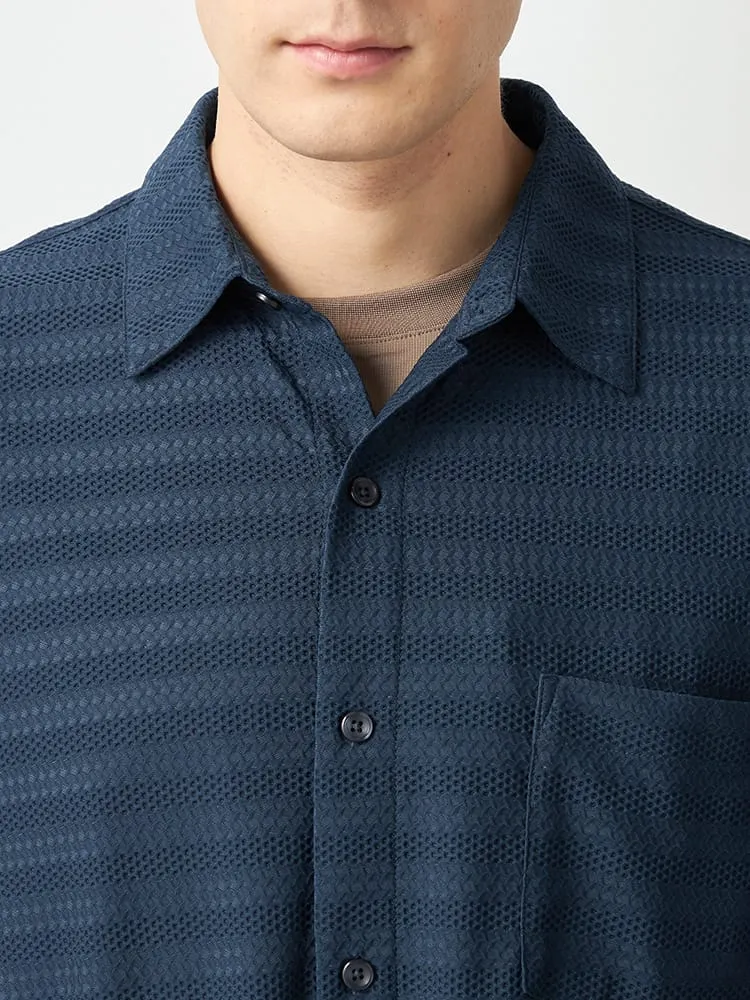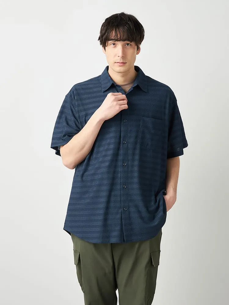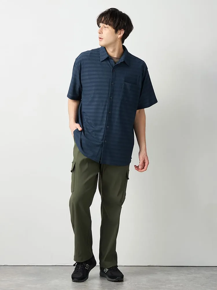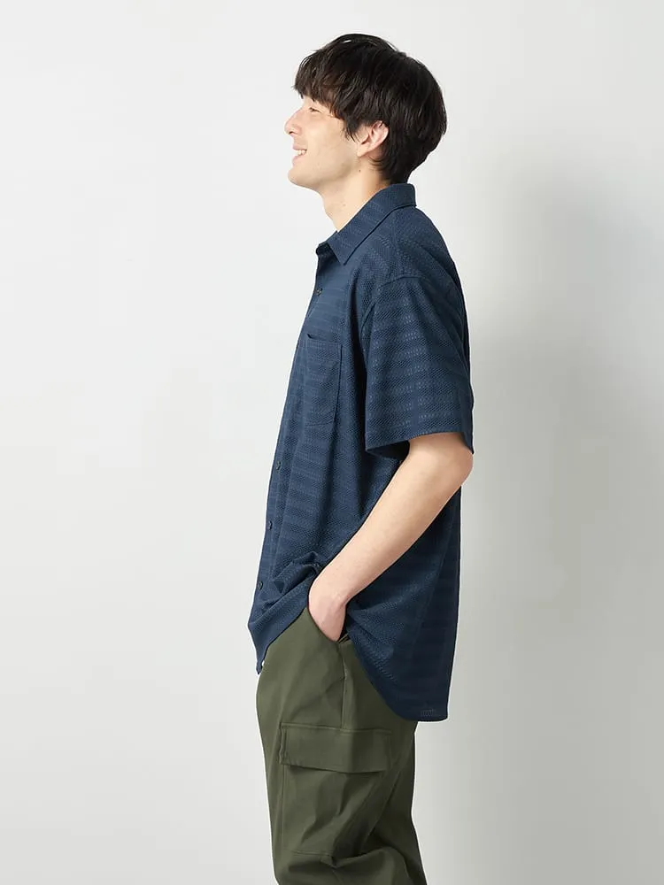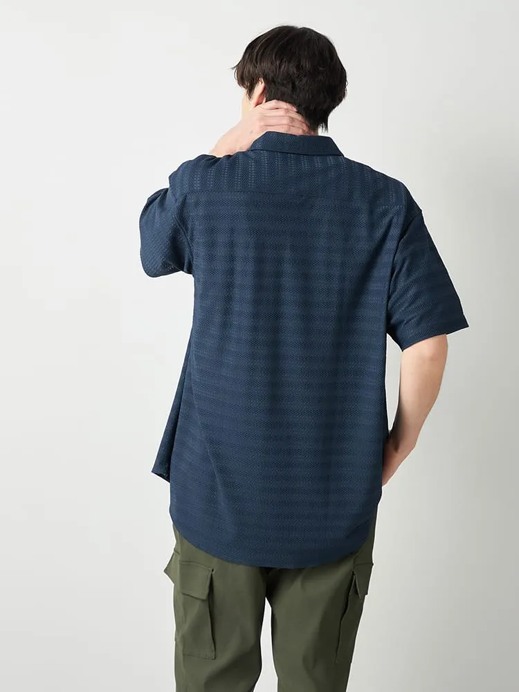 【TSC】ストレッチファイバージャガードニットシャツ(ネイビー)