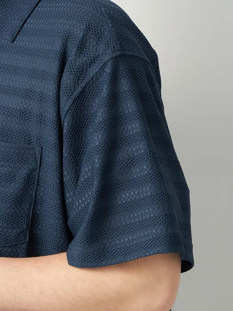 大きいサイズ メンズ 【TSC】ストレッチファイバージャガードニットシャツ(ネイビー)