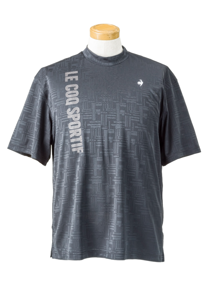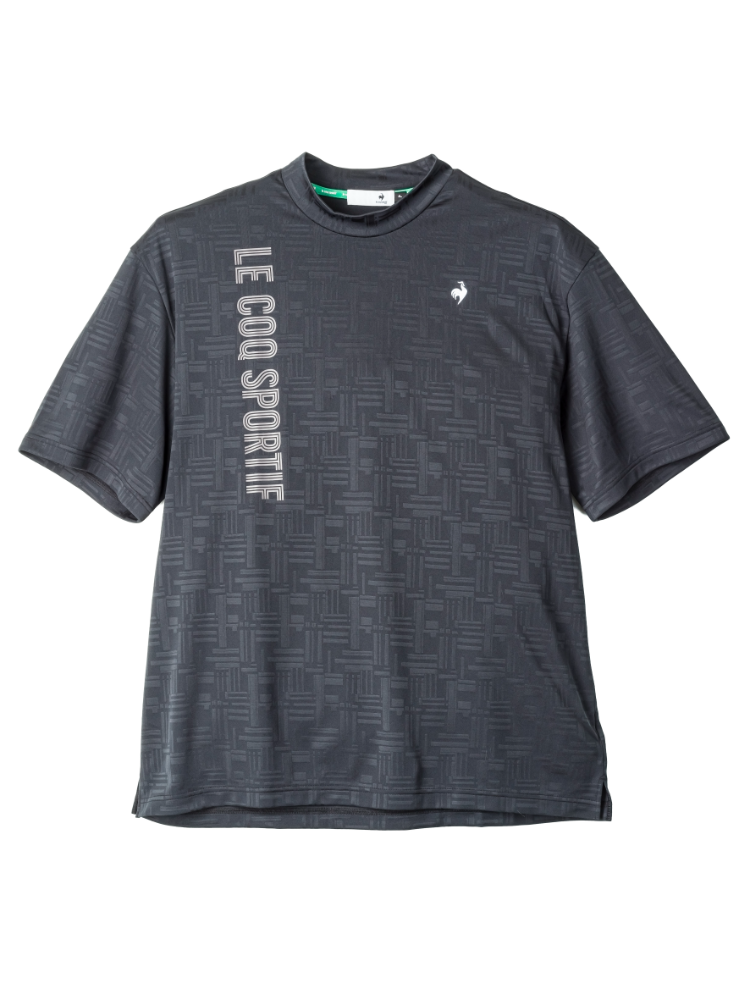 【ルコックゴルフ】チェックジャガード半袖モックネックシャツ(ブラック)