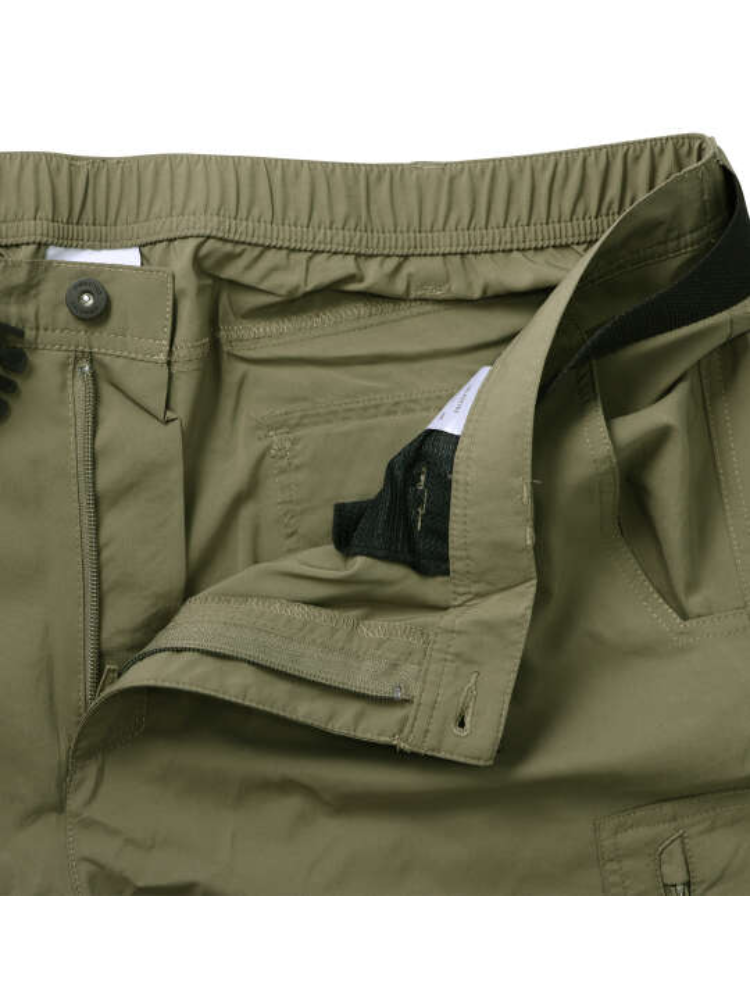 前開きファスナー/サイド・バックポケット/ベルトループ7本/ベルト付き/バックウエストシャーリング/オムニシェイド/UVカット(UPF50)/OMNI-WICK/速乾