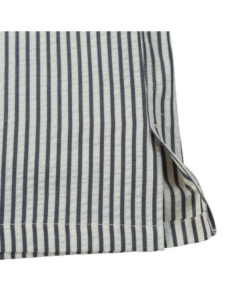 軽やかなサッカーテイストの風合いと、リラックス感のあるオープンカラーが程よい抜け感を演出します。